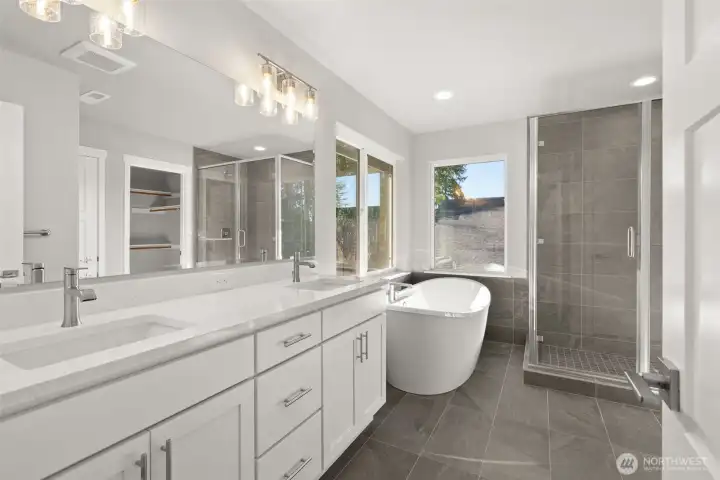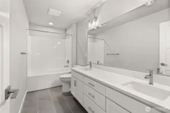 The Pinecrest at Trosper Woods, a thoughtfully designed 28-home community by Rob Rice Homes, blends timeless architecture with modern livability. This 2-story plan features 4 bedrooms, a main-floor den, and a large upstairs bonus room—ideal for remote work, guests, or recreation. The gourmet kitchen includes quartz counters, White Maple cabinetry with a Navy island, upgraded KitchenAid appliances, and a walk-in pantry. The spacious great room with gas fireplace opens to a covered patio and landscaped yard with privacy fencing—perfect for everyday living or entertaining. Hardwood flooring throughout the main floor. Upstairs, the elegant primary suite offers a 5-piece bath with vessel tub, tile shower, dual sinks, and walk-in closet. Built with energy efficiency in mind: triple-pane windows, cold-climate heat pump, solar panels, and hybrid water heater. Every home in Trosper Woods includes a 3-car garage and sits on a generous lot, just minutes from I-5, Costco, schools, and parks. Discover where quality meets comfort—welcome to Trosper Woods, where you’ll feel Naturally at Home.