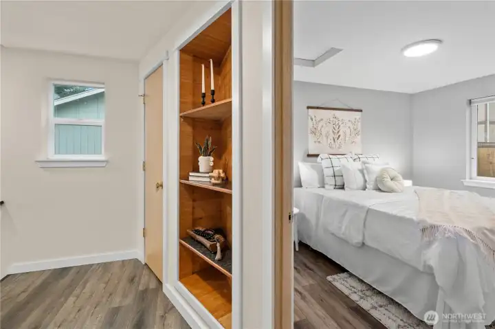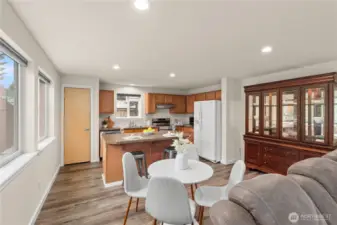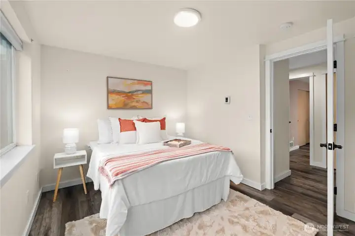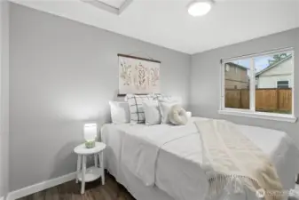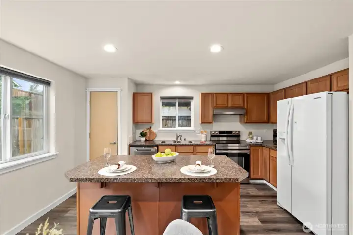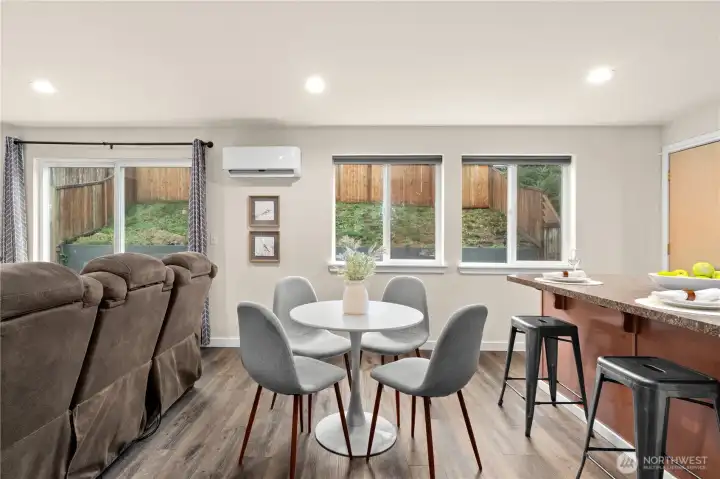 Tucked away on a low traffic quiet dead-end street this home features open-concept living on the main floor that flows seamlessly to the fenced yard-perfect for entertaining/pets/play, a mini-split for heating and cooling on the main floor, new LVP flooring and trim throughout, fresh interior paint downstairs w/dimmable recessed LED lighting, newer energy-efficient appliances-washer/dryer, dishwasher, and stove/oven, and an 80-gallon water heater. The garage has been partially converted into a versatile flex space—ideal for an office, gym, etc. yet can be easily converted back to a full garage if preferred. A few finishing touches are still needed, giving you the perfect opportunity to add your own personal style and make it truly your own.