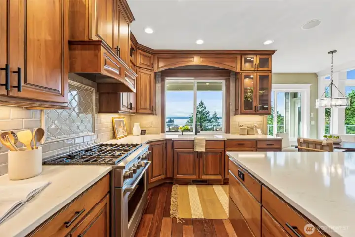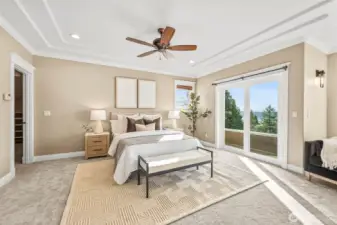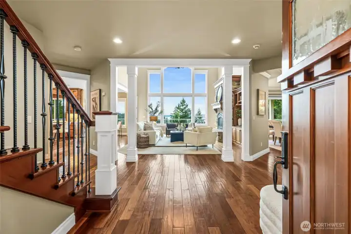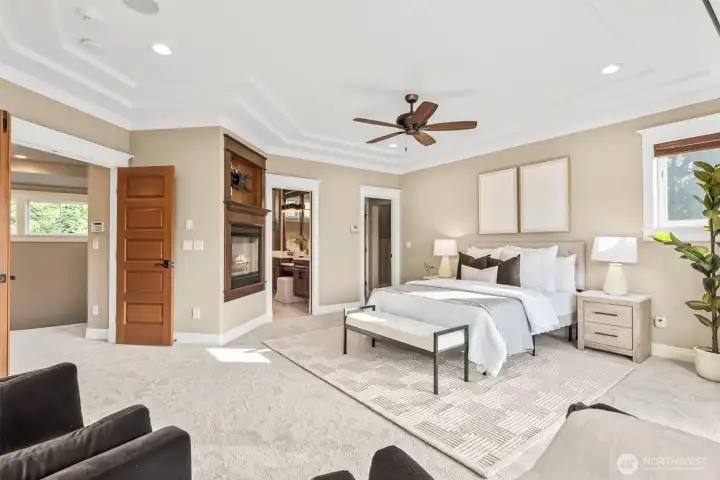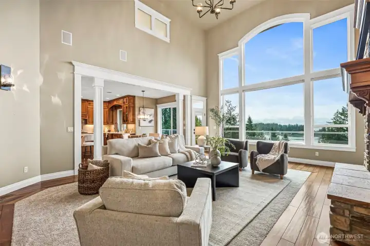Exquisite 4,800+ sq ft custom builder's home by Eagle Homes, perfectly situated on 1 acre to capture unforgettable sunsets. This refined two-story with daylight basement offers 4 bedrooms, 3.25 baths,& exceptional craftsmanship throughout. The expansive chef's kitchen showcases a grand island, eating nook,& is open to a 2 story great room that features a beautiful stone fireplace. The luxurious primary suite includes a double sided fireplace, quartz counters, soaking tub, & upscale finishes. The media room impresses with a fireplace, projector, 110" screen,& built in cabinetry equipped with microwave, bar sink, & beverage fridge. Extensive updates, including new carpet throughout, elevate every space. This is truly a rare, luxury view home.