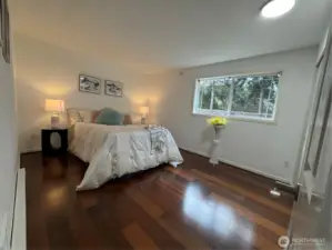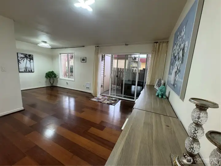 Beautifully upgraded ground floor condo in Bellevue’s desirable Lake Hills / Riverstone community! High-end remodel features elegant cherry cabinets, hardwood floors throughout (no carpet) & a kitchen hood vented to the outside. The flexible floor plan includes a door-enclosed living room that can easily serve as a temporary second bedroom w/ private fenced yard access, perfect for guests or extended stay. Additional storage at private patio. Enjoy brand new washer, fridge & dishwasher, plus freshly painted interiors. Well-maintained complex with no rental cap and no special assessments, low and healthy HOA which covers water, sewer, garbage & common area maintenance. Conveniently located near bus routes 245 & 271, Bellevue College, Crossroads Mall, I-90.