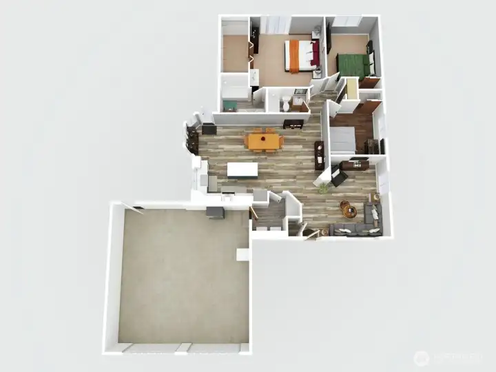 Welcome to this well-maintained 3-bed, 2-bath home featuring vaulted ceilings and an inviting, open layout. The roof and skylights were replaced within the last three years for added peace of mind. The remodeled kitchen offers shaker cabinets, a large island with granite counters, a farm sink, and generous workspace and storage. The dining area connects seamlessly to the main living space, creating a functional flow. The primary bedroom includes its own bath and ample closet space. Additional bedrooms provide flexibility for various needs. Enjoy the level yard and room for outdoor use, plus convenient access to local amenities, parks, and commuting options. A solid opportunity to own a thoughtfully updated home in Montesano.