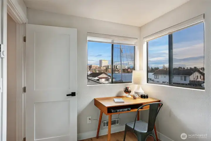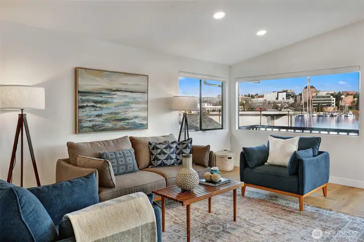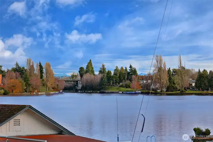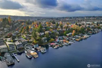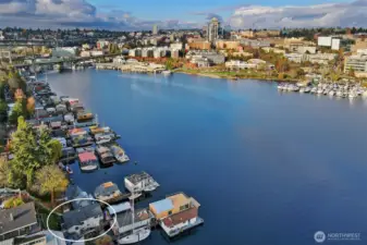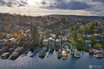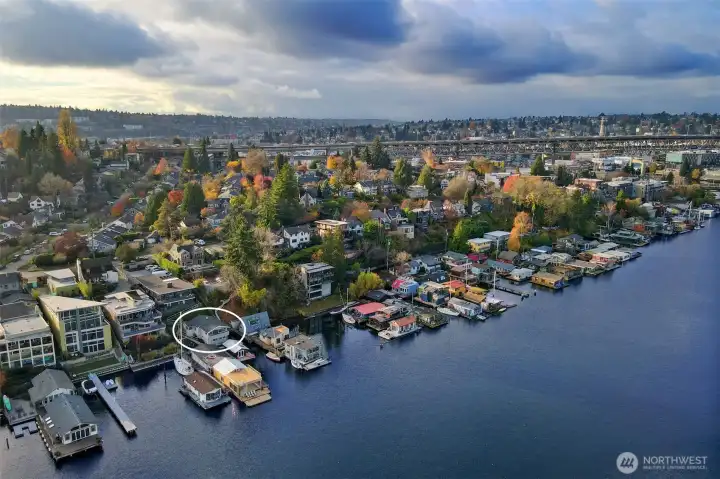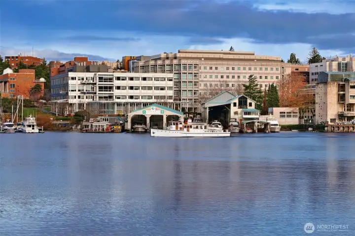 Enjoy sweeping views of Portage Bay from this charming waterfront cottage, located in one of Seattle’s most exceptional floating home co-ops. A very rare water-level “toy garage” with a wrap-around deck provides easy kayak, SUP, and small dinghy launching. The contemporary interior highlights a bright, light-filled living space with panoramic views of Portage Bay, the University of Washington, the Cascades, and the Montlake Cut. Flexible layout options allow for a home office or second bedroom. Includes two dedicated parking spaces and may be purchased individually or in combination with the neighboring floating home Unit C. Monthly HOA dues cover taxes and WSG. Waterfront memories await!