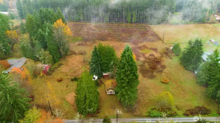 Bring your vision & your tools. Shy 10 acres on a private road w/ a charming craftsman-style fixer. Remodel, rebuild as a quaint cottage, or build your dream home & convert the existing house to an ADU. Property includes multiple detached buildings & an idyllic red barn—perfect for livestock, hobbies, or recreational toys. Enjoy peaceful living just minutes from town. Cash or rehab loan only. Extreme fixer—interior has mold; condition of structures, well, & septic unknown. No interior viewings without an accepted offer.