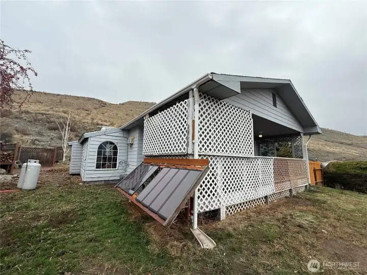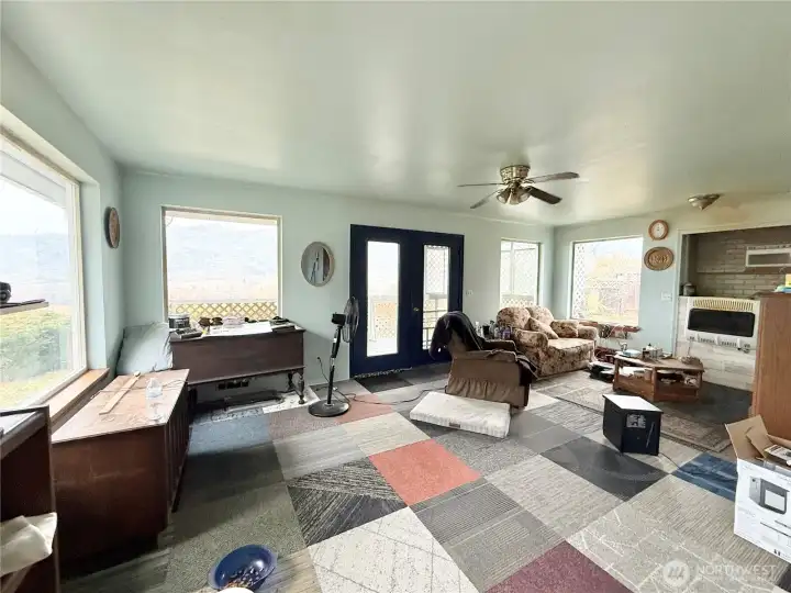 Stunning Views from this 2 bed / 2 bath single story home on .50 +/- acre. Large Primary bedroom with walk in closet, bonus room, full bath, sitting area and door to outside patio. Large Living room with large double pane windows, newer carpet, mini split for heating and cooling. Kitchen features granite counters, newer flooring, and appliances stay. Bonus room off the kitchen could be used as an office or a second dining area. Freshly painted laundry/mud room includes washer and dryer and lots of storage. Detached 2 car garage with shop space, multiple storage sheds. New privacy fence. Small solar hookup. H-3730/MLS2455608 $259,000