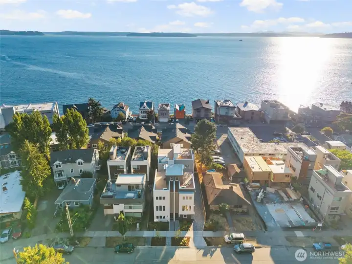 Last home remaining!! Stunning Olympic Mountain sunsets, exquisite interior designer influenced finishes showcase these custom residences. Centerpiece kitchen with Bellmont cabinetry, Cafe appliances accented by stylish fixutres & backsplash & soft tone hardwood floors. An open floorplan with tall vertical windows captures the abundance of natural light. Lutron Caseta smart lighting. Primary w/ dual vanity bath, heated floors, walk-in shower. 2 additional bedrooms provide an excellent opportunity for guests or a home office. Beautiful rooftop decks to enjoy the amazing sunshine against the backdrop of the Sound. Dedicated 1-car parking EV prepped. Walk to the beach/bike to Alki and enjoy the unique splendor of West Seattle.