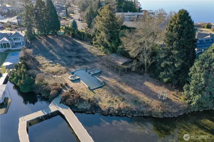 Opportunities like this are Nearly Extinct - 1.25 acre Buildable site with 175 feet of low bank waterfront + 100' ft dock for your yacht or personal watercraft. Room for an 18 car garage. A rare blank canvas - The foundation is in place, but you decide the home’s final design, Commanding Views of the water, East Channel Bridge, Mercer Island, and Beaux Arts. Located minutes from DT Seattle or Bellevue, yet feels like a private retreat. #1 school district in the state. Two sets of permits, one expired, one in process = time and cost saving advantage. Too many bonuses to list. Price includes land, Plans, permits + improvements. Cost to complete the home starts at 3m. The freedom to build your legacy on the area's largest lake awaits