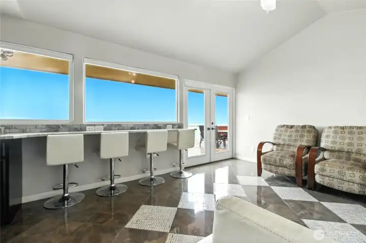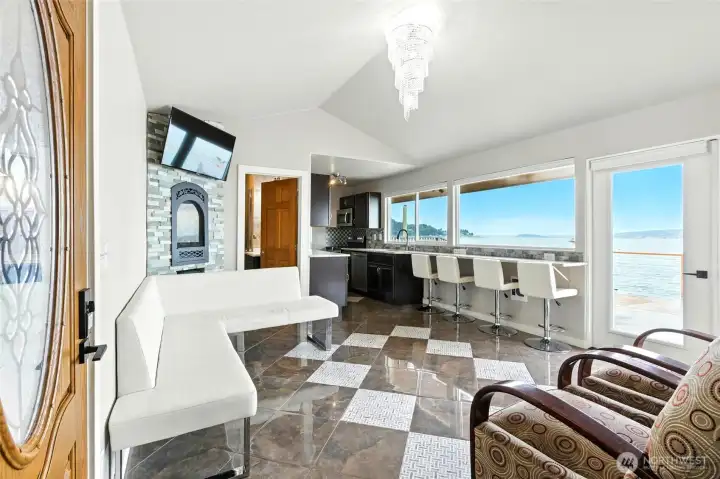 STUNNING SOUND VIEWS and BREATHTAKING SUNSETS over the water. PRIME NO-BANK WATERFRONT home on highly sought-after Utsalady Bay. This charming 2-bdrm, 1-bth home with an office/bonus room—ideal for remote work or guest overflow. Situated on a generous 13,981 SF lot, the home was completely upgraded in 2018 with elegant finishes throughout: new kitchen, bath, windows, siding, plumbing, electrical, insulation, & more. Step outside to your expansive 1,200 SF colored stamp concrete deck, designed for luxury coastal living— featuring 8-person spa, gas stub for BBQ & fireplace, & plenty of space to relax, entertain. A rare opportunity to own a slice of waterfront paradise where comfort & coastal beauty meet.