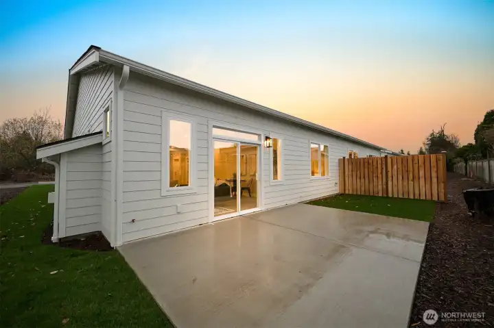 Brand new luxurious living! Single-level living with absolutely ZERO steps. Intelligent design captures the essence of true Northwest architecture with a modern flair. Generously sized windows & vaulted ceilings create a light & airy atmosphere. Magnificent chef's kitchen fully loaded with quartz counter tops, stainless appliances, soft close drawers & under cabinet lighting. Huge primary bedroom & a spa-like en suite. Enjoy your own backyard with a patio & privacy fence, plus the convenience of an attached garage—all in a serene, quiet location, in a gated neighborhood. Efficient heating plus A/C. 55+ living, yet 20% of the homes can be any age.