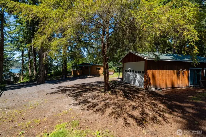 Enjoy coastal living in this 1200 square foot cottage, featuring filtered water views. View easement protects the view. Fee simple property includes a spacious detached garage with workshop and carport, ideal for hobbies, storage or extra parking. Room for RV parking. Additional outbuilding for storage or greenhouse. Oversized lot includes an extra parcel for added privacy. Enjoy membership in the Hope Island Beach Club which includes a private beach, boat launch, tennis court and clubhouse. Home being sold "as-is". Bring your creativity and make it your home.