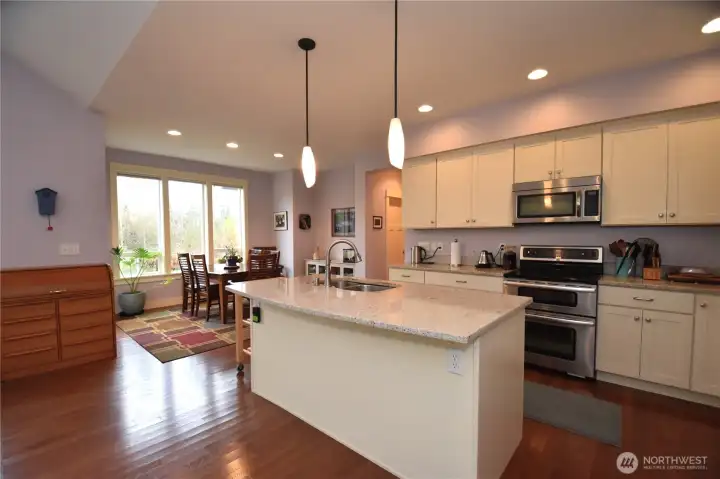 {Exceptionally maintained Rambler adjacent to Wildlife Sanctuary!} This immaculate Craftsman Style home offers views of a serene 15 acres of green space & a bird sanctuary right out your living room, dining room, primary bedroom windows, as well as from all angles of your partially fenced backyard; or enjoy while sitting in your newer hot tub! Yard features multiple varieties of pear & apple trees as well as blackberries & blueberries w/newer sprinkler system. Large patio w/partial covering. Inside is warm & inviting w/an open concept, vaulted ceilings, gas fireplace, stainless appliances, breakfast nook & plenty of storage. Primary bedroom is large w/walk in closet & ensuite w/soaking tub. Newer internal paint & hot water tank. A must see!