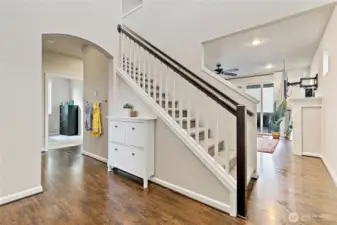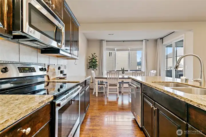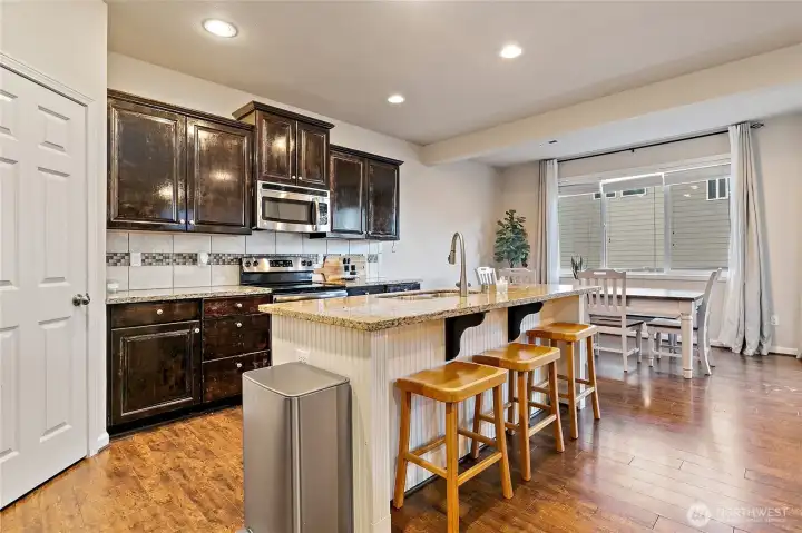 Discover comfort and convenience in this well-maintained 2014 home featuring an open concept living, kitchen, and dining area perfect for everyday living and gatherings. The kitchen shines with new appliances, granite counters, freshly painted cabinetry, and espresso accents, while hardwood floors flow throughout the main level. The spacious primary suite offers an upgraded closet system for excellent organization. A flexible office/den adds versatility. Enjoy the low-maintenance yard from the back deck complete with an outdoor gas fireplace. Located just a short walk to the neighborhood park and offering an easy commute to JBLM, this home blends style + practicality in a great location.