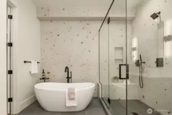 Enfort Homes unveils “Samsonite,” an exquisitely handcrafted residence poised at the crest of a serene Highlands cul-de-sac, perfectly placed for quiet living & modern comfort. Designed w expansive windows for abundant natural light & dramatic ceilings, it showcases bold modern style, bespoke details & premium upgrades. An open-concept great room connects to a culinary-studio kitchen w premium appliances & dining area leading to a refined covered patio. Retreat to a resort-style primary suite w a spa bath, heated floors & custom WIC, or work from the private office. Lower level offers a versatile bonus room, full ensuite & extra bedroom. 3-car tandem garage w EV outlet, fully-fenced yard & easy access to award-winning schools & nearby parks