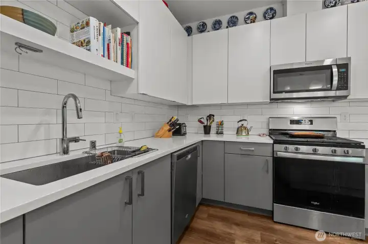 You found your new home! This corner unit boast ample light top to bottom. Built by local builder Ruud Development this home exudes quality and is thoughtfully designed for modern living. From the quartz countertops, luxury vinyl plank flooring & stainless-steel appliances to the vaulted ceilings, you'll feel right at home. Upstairs you'll find 3 bedrooms, 2 bathrooms, a den and laundry room for convenient living. Energy efficient mini splits offer A/C in the summer and heating in the winter. Across the street is the Civic Park featuring a playground, gathering space, basketball courts and walking trails. Ten Trails is minutes away from Lake Sawyer, hiking & biking trails, shopping and multiple state parks. Welcome to your new home!
