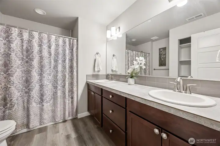 Spectacular home on 1 acre spanning two parcels & NO HOA! Formal living & dining room W/timeless wainscoting, flowing into the gourmet kitchen W/full-height subway tile backsplash, granite counters, gas range, WI pantry, & SS appliances. Family room W/cozy FP. Main floor secondary primary suite W/full bath & WIC. The 2nd floor boasts a large bonus room W/built-in entertainment center, 2 additional guest bedrooms, an office/den, extra finished room & a full guest bath W/tile floors & counters- The luxurious primary suite boasts a 5-piece bath ft. standalone soaking tub, tiled shower, dual sinks, granite counters, & custom WIC! Other features include open spindle railing, water softener system, & W/D that convey- RV parking & 3-car garage!