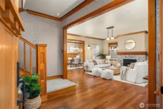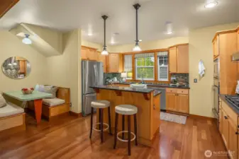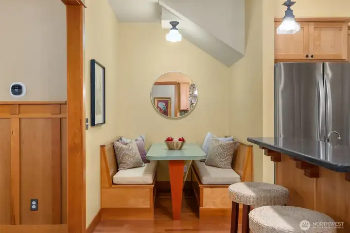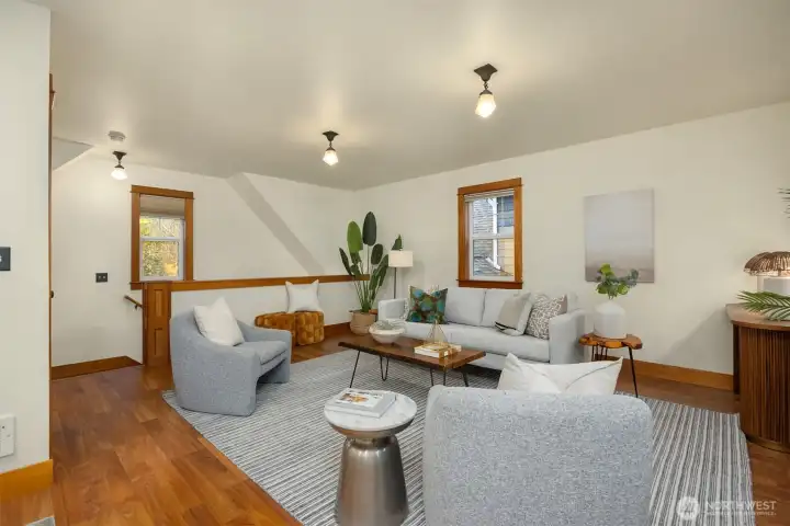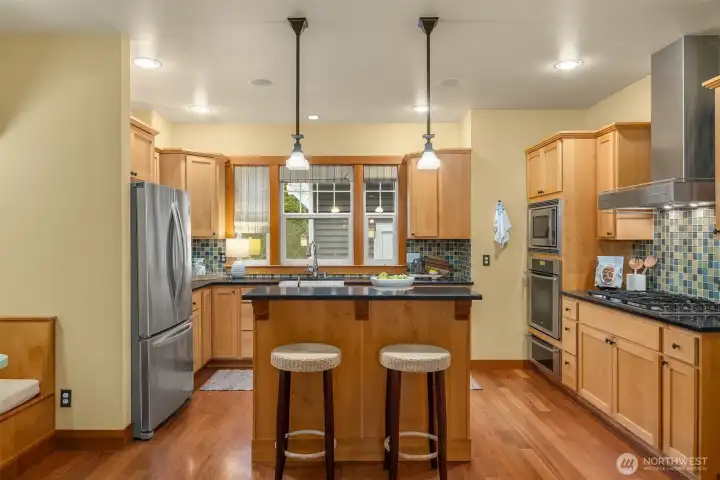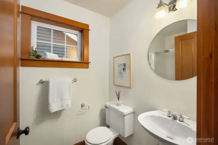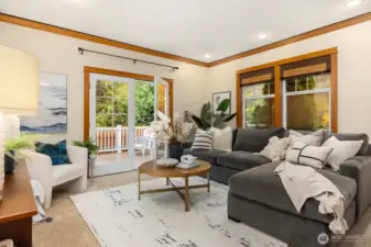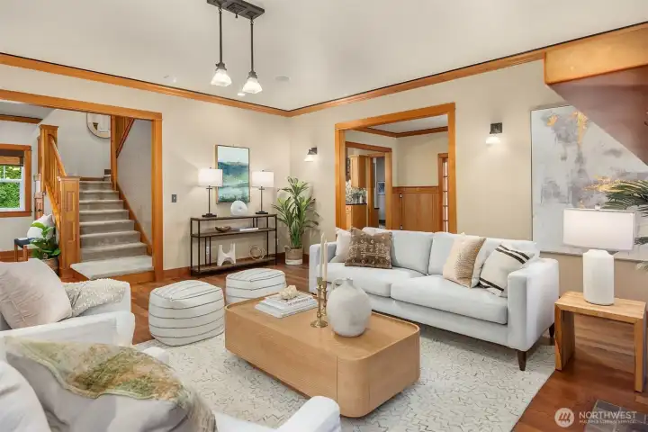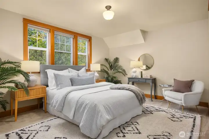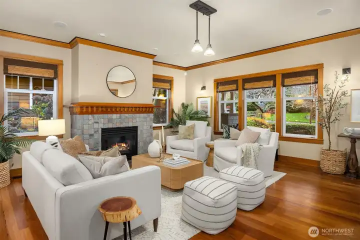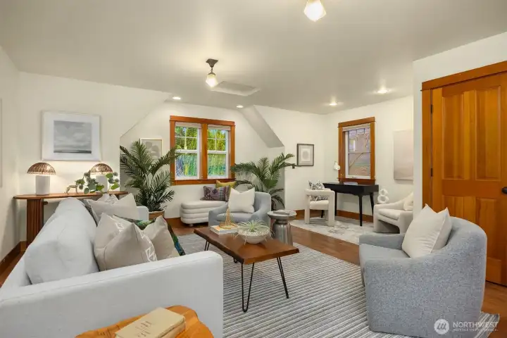 Welcome to this lightly lived-in Craftsman tucked into the heart of North Town Woods. A generous covered front porch and a newer Trex deck create effortless indoor–outdoor living. The main level offers an open layout plus a separate family room or private office. Upstairs you’ll find three comfortable bedrooms, a convenient laundry room and a bonus space perfect for lounging, hobbies or homework. The 460 sq ft detached garage includes a versatile studio with a 3/4 bath, ideal for guests, extended living, or a dedicated workspace. The two-car garage features EV charging, and the home has seen thoughtful updates including a new roof, a security system, and extensive window replacement. Move-in ready and close to schools, town and ferry.
