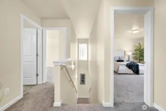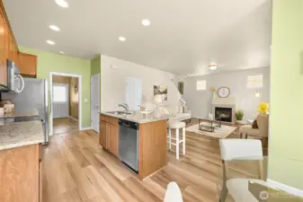 Welcome to this beautifully maintained 3-bedroom, 2.5-bath home offering 1,495 sq. ft. of comfortable living space. Built in 2012, the open-concept main floor features a spacious kitchen and living area centered around a cozy fireplace—perfect for gatherings. Upstairs, the large primary suite boasts a walk-in closet and private bath, while two additional bedrooms share a full bath. The conveniently located upstairs laundry makes everyday living a breeze. Outside, enjoy a fully fenced yard, two-car garage with alley access, and close proximity to the community playground and basketball court. A wonderful blend of comfort and convenience awaits!