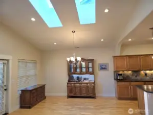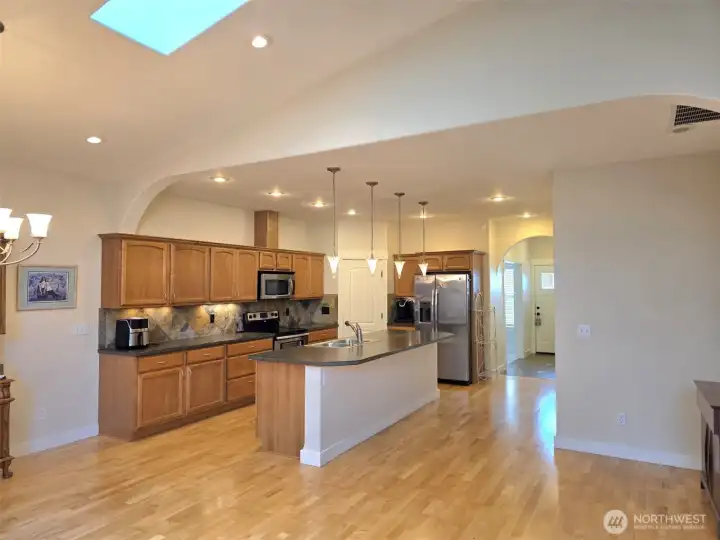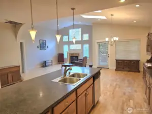 A delightful and unique home! Architecturally designed with attention to scale, proportion and alignment, this beautiful floor plan is more than just functional. Soaring ceilings, picture windows and skylights bring in lots of natural light. Award winning kitchen is the focal point of this open concept living. Generous counter space is perfect for entertaining! Primary bdrm has ensuite with extra large walk in shower, and walk in closet. Laundry room has lots of storage as well as a sink. Den can be used as a bedroom. Pretty, covered back patio surrounded by lush greenery is very private and maintenance free. Bella Housa is the only neighborhood in Yelm featuring it's own community center-a special place to gather. Enjoy!