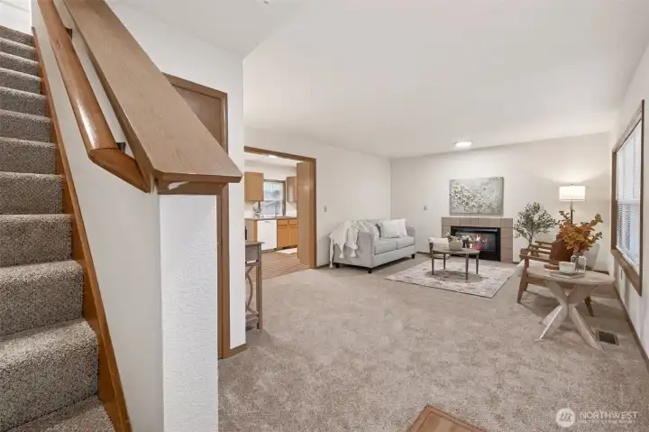 Fantastic opportunity! This updated two-story home features fresh interior paint, new vinyl flooring, and new carpet throughout. Offering 3 bedrooms and 1.5 baths, the home includes a spacious living room with a cozy gas fireplace that opens to the dining area. The kitchen offers classic oak cabinetry, new vinyl flooring, and newer appliances. Enjoy an attached garage, a fully fenced backyard with a patio, and convenient RV parking. Located within walking distance of parks, schools, and downtown Enumclaw! Plus—take in the beautiful view of Mt. Rainier! Homes in this location and conditions don’t last long-schedule your showing today and make it yours!