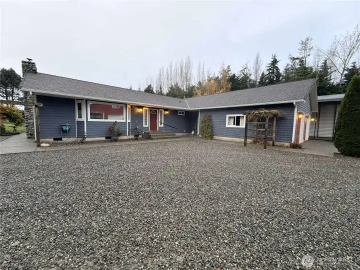 Mountain view home/HUGE SHOP. Completely fenced with solar gated. 2.8 Acres. Home has walk-in pantry, shower and bedroom closet. 840 sq foot garage turned into bonus room that is easily transformed back if desired. The wood stove insert is surrounded by river rock floor to ceiling and is the central living attraction. Southern exposure in living and kitchen area. The HUGE metal pole barn is 48 x 44 and has an additional carport attached that is 33 x 48. The shop has toilet and sink. 900 sq foot apartment above the shop that can garner upwards of 1500.00 per month if so desired. Large greenhouse, two more outbuildings, RV, boat, toy parking galore. RV dump. Numerous berries, fruit trees, and a Walnut tree. Easy yard maintenance.