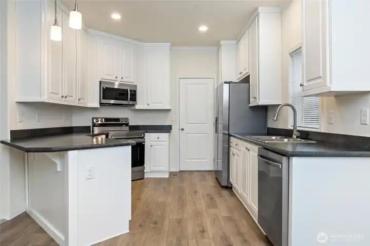 Welcome to your brand NEW 2025 built home! Step inside & fall in love with the open floor plan, high ceilings, and designer finishes throughout. The spacious kitchen features white cabinetry, stainless steel appliances, and a large peninsula perfect for entertaining-seamlessly flowing into the bright living room. The primary suite includes a walk-in closet and a private bath with a stylish walk-in shower. Outside you'll appreciate the detached 660 SqFt 2 car garage with garage doors on both sides-ideal for a shop, projects, or storing all of your toys. Huge back yard is perfect for BBQ's, play area, gardening, or creating your dream outdoor space. Minutes away from 410, schools & amenities. Come see before its to late!