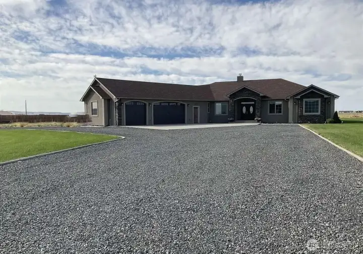 This Custom 2900 square foot 1-story sits on 2.5 flat acres, 4 bedrooms and a den/office, 3 full bathrooms, entertaining room, living room, 10' ceilings and stone wood fireplace. Large kitchen with granite counters, undermount farm sink, double ovens, high end appliances, pot filler at stove, and walk in pantry. Whole house water softening system, central vac, wifi garage doors and sprinklers, 2 hot water tanks and hot/cold outside water spigot. Three car garage with extra deep bays to accommodate large vehicles with additional space for storage. Huge garden and plenty of room for a shop, pool or both! Chicken coop, compost station, and primitive fire ring for farm-like living. Enjoy the peaceful country setting minutes from town!