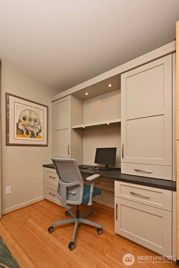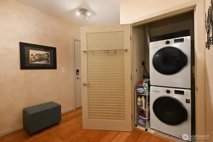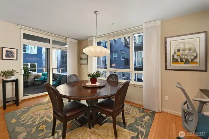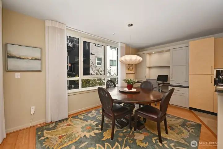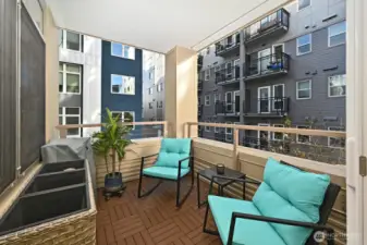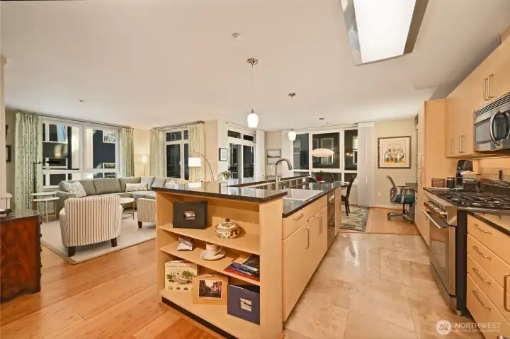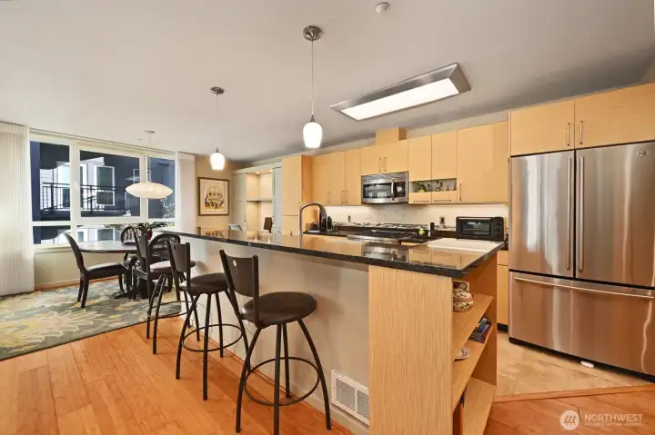 Welcome to Hjarta in the heart of Ballard! This is one of the more spacious one-bedroom condos in the area, offering modern, open living spaces. The kitchen features a large island and newer high-end appliances, complemented by a recently updated bath, lg bdrm & walk-in closet. Custom built-in entertainment center and separate office space—perfect for working from home. A private balcony extends your living space, while secure garage parking and a storage unit add convenience. Steps from Ballard’s best dining, cafes, shops, and transit—ideal for commuting. Built with durable steel-and-concrete construction and LEED certified plus additional building amenities include a roof top patio with a p-patch, BBQs, a gym, & rec room. Well run HOA!