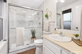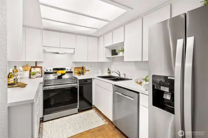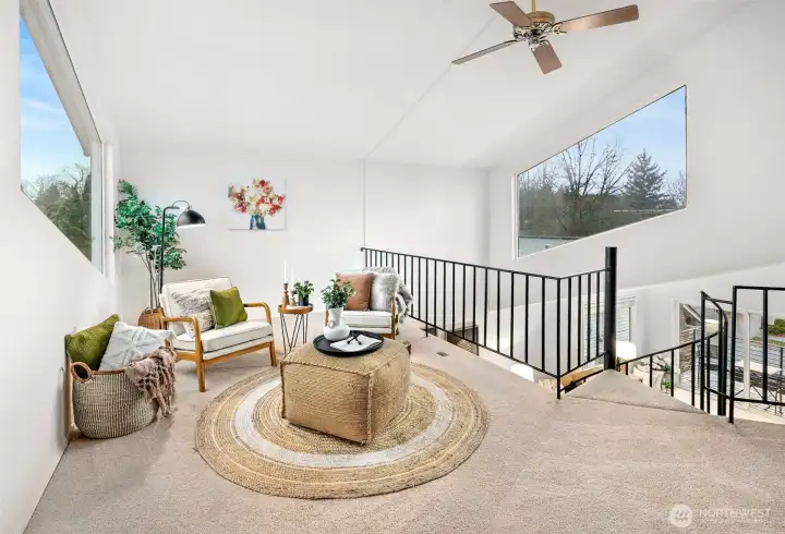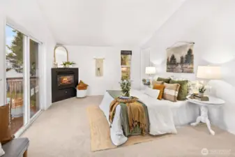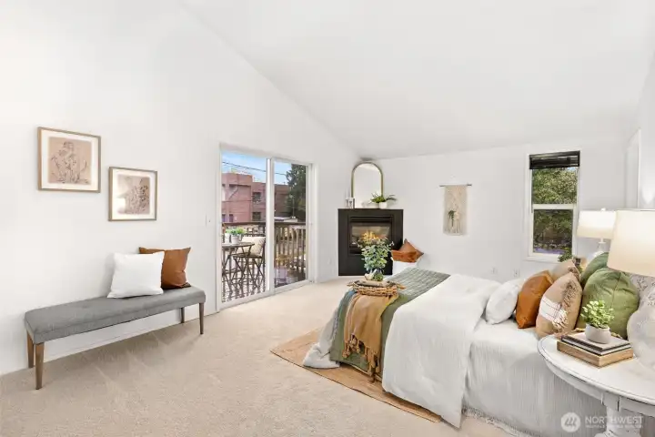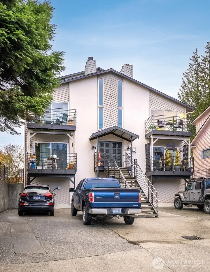 Moments from the Marina & downtown, this Rucker Hill condo offers convenience and style! Step inside to discover fresh paint & carpet throughout. You'll love the standout spiral staircase leading to the loft, w/ floor-to-ceiling bookcase and rolling ladder. The large living room centers around a striking mirrored fireplace & opens to the front balcony. The kitchen features a new stove and fridge! Down the hall, enjoy in-unit laundry & a bedroom with a nearby full bath w/new shower surround. The primary suite has access to the back deck & ensuite w/updated walk-in shower. The unit includes two dedicated outside tandem parking spaces, one dedicated garage, plus two private storage closets. Well maintained condo, roof is only a few yrs old!