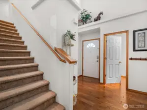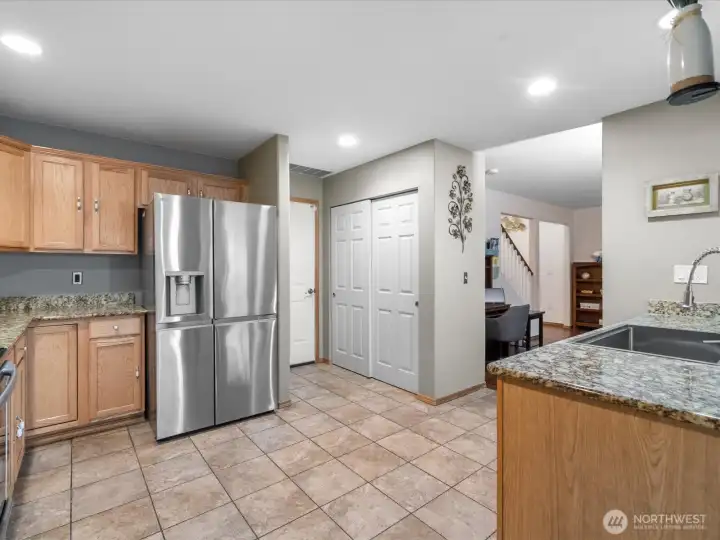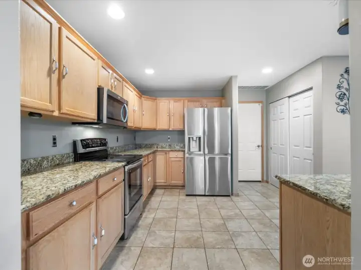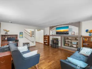 Hardwood floor entry leads to spacious living space with gas fireplace. Open kitchen has stainless steel appliances, granite counters and tile flooring. Half bath downstairs.Stairway to large primary bedroom with private bathroom and walk-in closet. Well sized other bedrooms and bathroom, with upstairs laundry for your convenience. House wired for ethernet with security cameras front and back, an EcoBee Smart Thermostat and AI (Alexa) capabilities.Generous two car garage and fully fenced backyard complete this amazing package.
