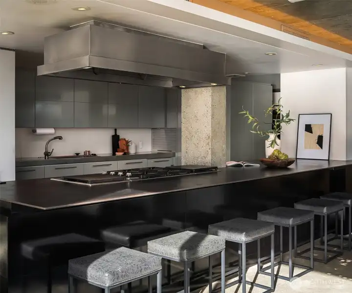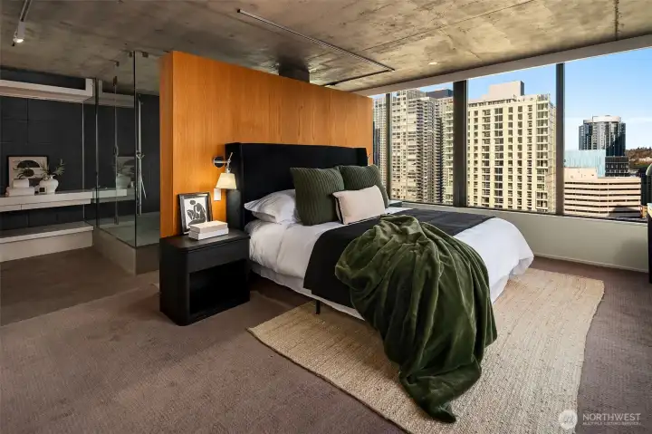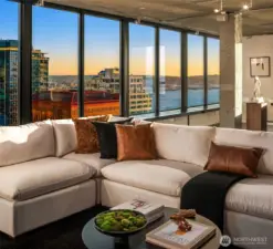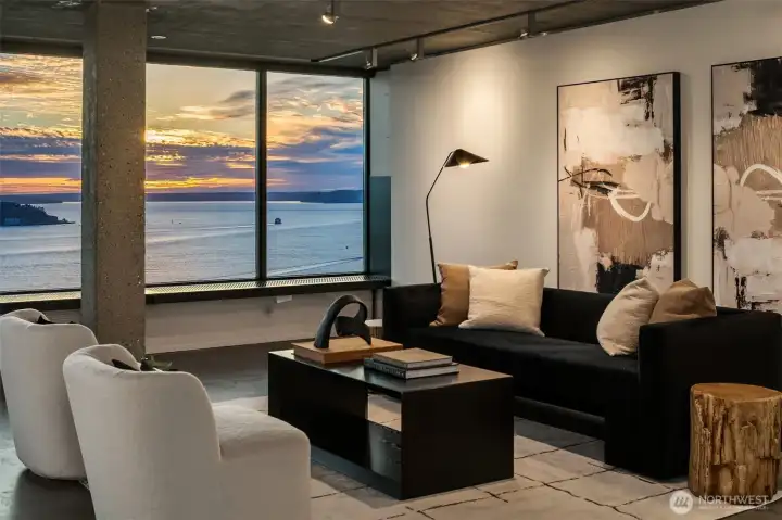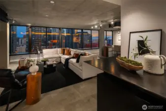 Penthouse views meet timeless design in this one-of-a-kind custom design by Jim Olson of (Olson Kundig). Expansive spaces with wrap around views of more than 2,800 sq ft. Exposed concrete ceilings and floors, steel countertops and custom steel ledges and lighting throughout. Open kitchen with gas cooking, Sub-Zero refrigerator, freezer, two temperature-controlled wine storage units and more. A massive primary suite with an oversized walk-in closet, dual sinks, glass enclosed rain shower and free-standing tub. A flex space for home office, guests or second bedroom. A recent upgrade includes a three-quarter bath for guests and a bar for entertaining. 2 parking, storage, on-site manager, pool, sauna and gym. An incredible opportunity!