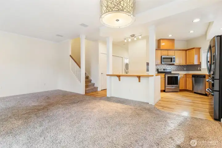 Experience effortless living in the sought-after Hampton East gated community. This charming end-unit condo features brand-new luxury vinyl plank flooring, a cozy fireplace in the inviting living space, and a spacious two-car garage. The grand primary suite offers a walk-in closet and private ensuite, complemented by two additional bedrooms. Enjoy a serene backyard with a covered patio, plus access to the community clubhouse. All just minutes from Lake Meridian, Kent Meridian High School and surrounded by endless amenities including shops, grocery, dining, and more.