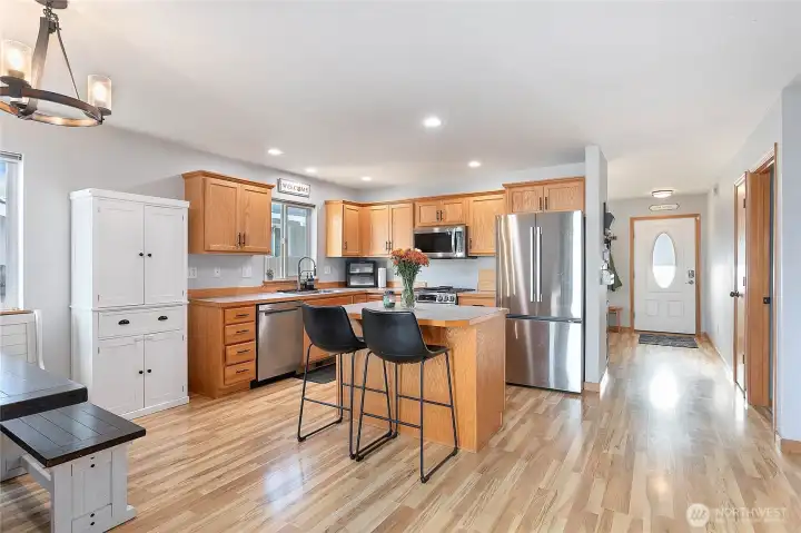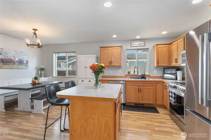 Meticulously maintained single-level home featuring 3 bedrooms, 2 full baths w/ an open-concept layout. Ideally located at the gateway to Mt. Baker & the Nooksack river! Escape to the outdoors w/ nearby Mtn biking & hiking trails, Lake Whatcom & Whatcom Falls Park. Within minutes of Barkley Village's dining, shopping, & entertainment. Add peace of mind w/ new roof, gutters, water heater, updated ss appliances & more! Relax in comfort w/ A/C, a charming covered porch, sun-filled private deck & fully fenced backyard. The spacious primary suite features an ensuite bath & oversized walk-in closet. With a large 2-car garage & shelving, extra parking, & a quiet dead-end street across from a playground, this home truly has it all!