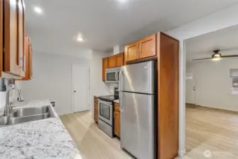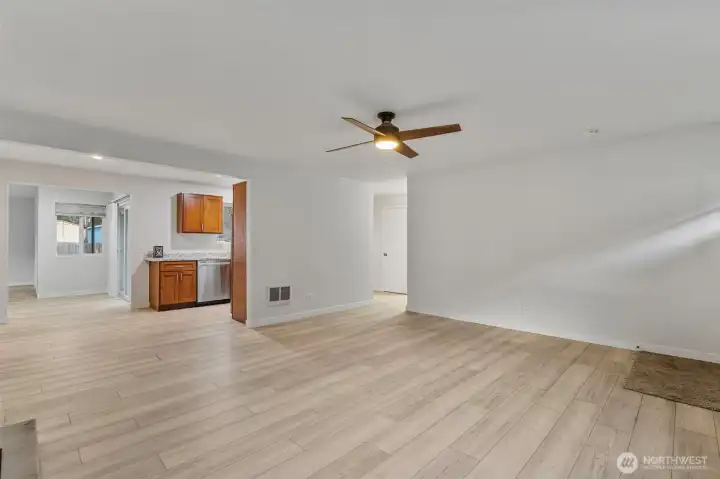 Bright, open and beautifully remodeled rambler within walking distance to city center, Jubilee Park, and the Middle/High School. There are three bedrooms plus a den and family room. SS appliances, upgraded cabinets and granite countertops in the kitchen. The vinyl windows, cedar siding, roof, plumbing, electrical, interior doors, and more were updated with a complete top to bottom remodel in 2021.Durable vinyl plank flooring throughout the home with carpeting in the bedrooms. Good sized family room with huge picture window. Garden area, shop, and a landscape artists paradise with well tended gardens in front and back yards. RV parking, alley access to the back yard and shop. A must see!