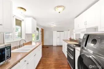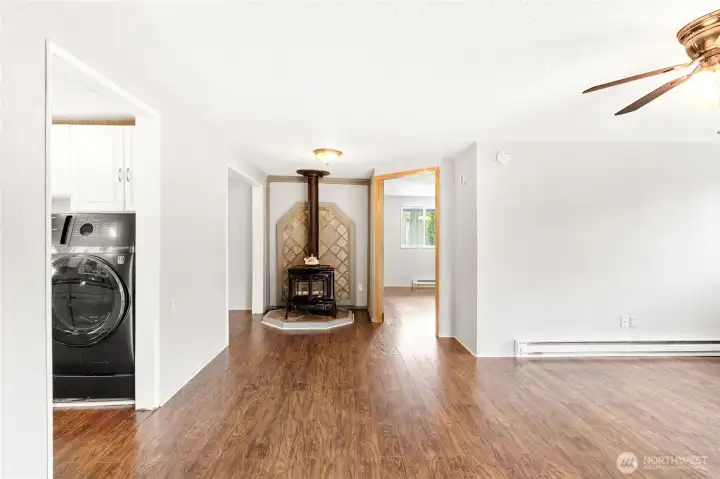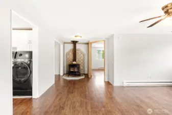 Welcome to this charming one-story, 4-bedroom home, perfectly situated on a level corner lot in a desirable in-town location—just minutes from the school, parks, and everyday amenities. Featuring 1.75 bath and two spacious living areas, including a cozy wood-burning free-standing stove, this home is perfect for relaxing or entertaining. Recent updates include a new roof and gutters installed in 2024, along with fresh exterior paint. Step outside to a covered concrete patio and deck, offering multiple outdoor spaces to enjoy. The detached 2-car garage provides ample storage and workspace. Well-maintained and move-in ready, this home combines comfort, convenience, and timeless charm—an opportunity you won’t want to miss!