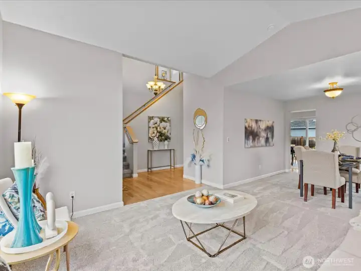 Welcome to this move-in-ready Lakeland Hills 4 Bedroom/2.5 Bath/2 car Garage. Large corner lot with a nice fenced backyard, perfect space for outdoor entertaining. Brand new roof, exterior and interior paint, and new carpet, all in 2025! Newer Furnace installed in 2022. The main floor has a Formal Dining and Living Room. Large Family Room off the Kitchen w/extra adjoining room, perfect for an office/den, workout, or craft room. Lots of natural light! Upstairs features a spacious primary suite with a double sink vanity, shower, and Lg walk-in closet, plus 3 additional bedrooms. Lakeland Hills offers parks, trails, and play fields, and is less than 5 minutes from all the shopping at Lakeland Town Center. Plus, only minutes to Lake Tapps Park!