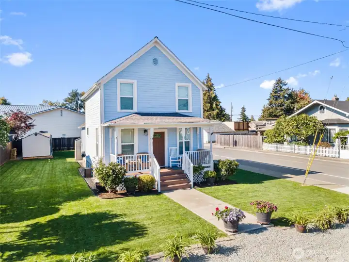 Step into timeless charm with this beautifully maintained turn-of-the-century 3-bedroom, 1.5-bath home in the heart of Stanwood! Nestled on a corner lot, this 1,152 sq ft gem features 3/4 fenced yard, meticulously manicured yard with lush landscaping and multiple storage units. Both porches recently upgraded as well as both bathrooms too. Enjoy the convenience of RV parking, all appliances are included and a location just minutes from shops, schools, and parks. Perfectly priced at $475,000—this is an incredible opportunity for first-time buyers to own a piece of Stanwood’s history with modern comfort and classic style! Home is also on Community Transit bus line 240. Pre-Inspection has been done as well and available after showing