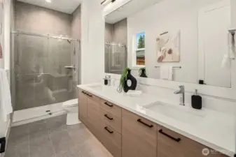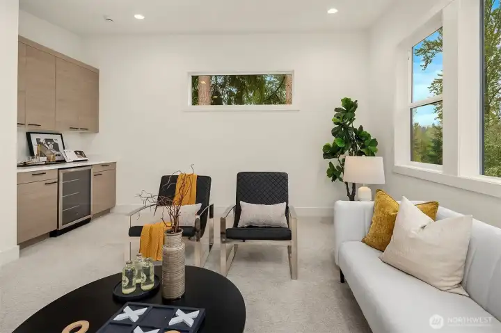 MN Custom Homes releases a transitional design in the convenient Lake Hills neighborhood. Chef's kitchen with high-end appliances and entertaining island. Vaulted great room with extensive use of windows. Secluded upstairs bonus room & covered outdoor living area are ideal for entertaining fun. Primary suite with heated bathroom floors & stunning 5-piece bath. Private main floor guest suite. Dedicated home office. Private backyard. East facing front door. Smart Home and green features throughout, including solar panels. Nationally ranked Bellevue Schools. Located just minutes from MSFT, shopping, trails, and parks.
