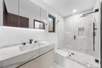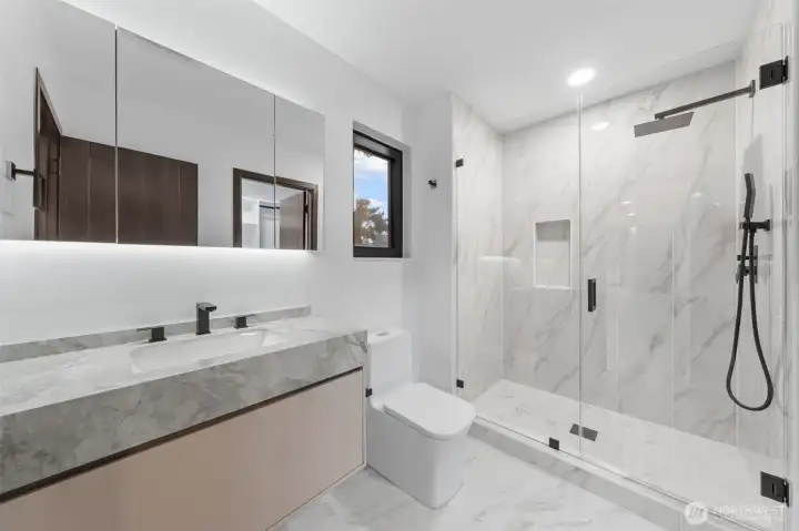Be one of the only four owners in this new, ultra-luxury community! Every detail has been thoughtfully selected for you. Experience high ceilings and custom-crafted vaulted doors. Enjoy wood floors throughout, easy-to-maintain sintered stone countertops in the gourmet kitchen and baths, superior triple-pane soundproof windows and doors, ensuring a peaceful retreat from the outside world. All your bedrooms are en-suite. Contributing to a greener lifestyle and lower utility bills, a powerful 6k-watt solar panel system. Dry sauna and movie theater ensure peace. Custom high-end lighting fixtures that illuminate the sophisticated interiors. Ask how to get a 2.75% rate! Limited time only Only four residences exist. Welcome home.