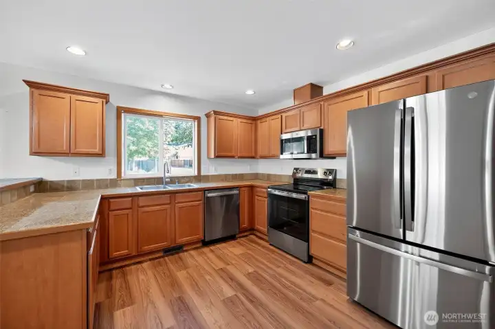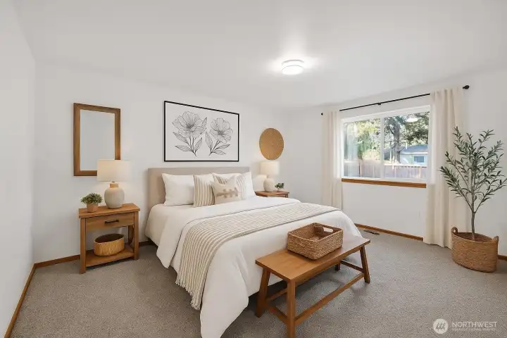 Charming and spacious home on a quiet dead-end street next to a playground! The main level offers a private primary suite, two additional bedrooms, and a full bath. Upstairs features a large flex space, additional bedroom, and full bath—perfect for a bonus room, office, or guest space. Recent updates include a new roof, fresh interior paint, new flooring, updated bathrooms, and new appliances. Pre-inspected with fixes completed. Conveniently located near transit, shopping, dining, and just 10 minutes to the freeway. Move-in ready—don’t miss it!