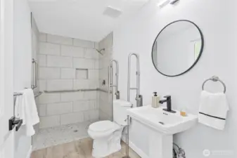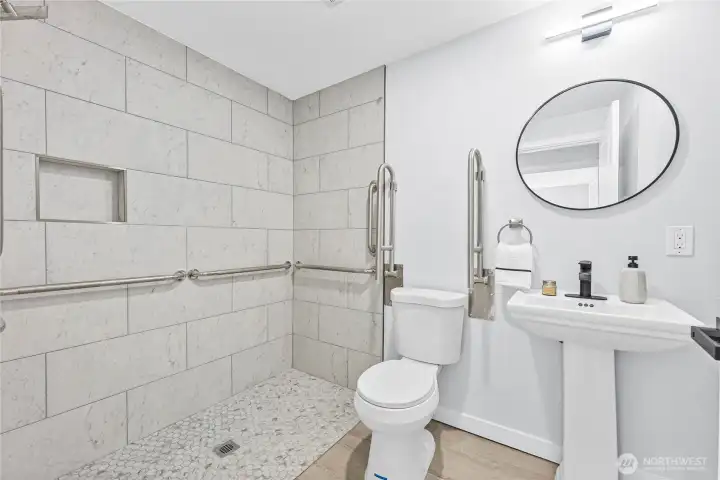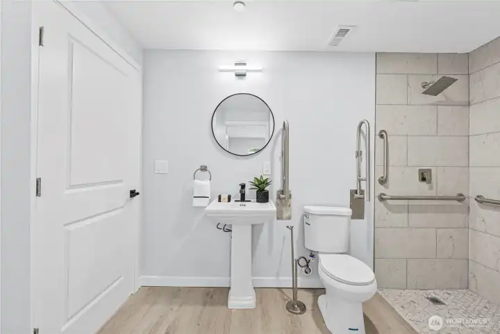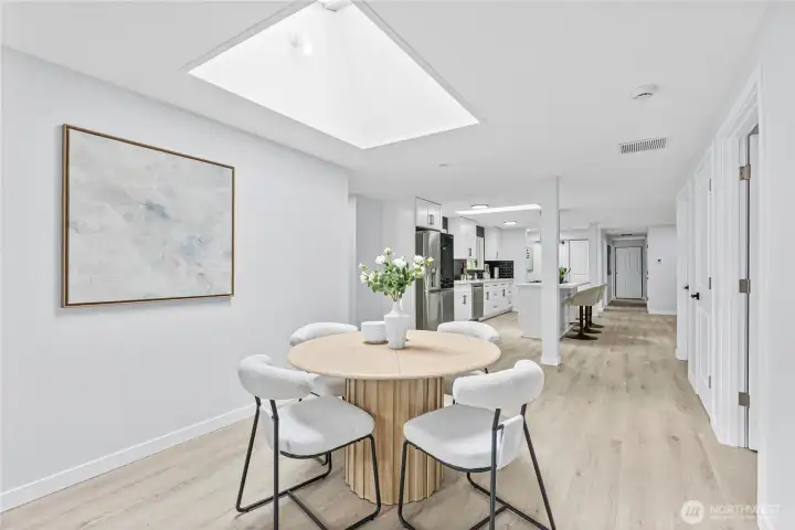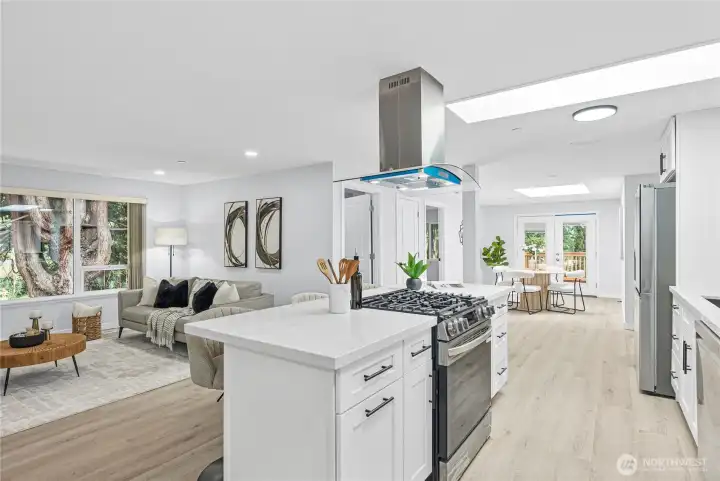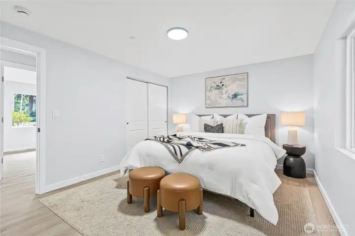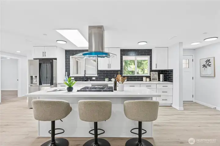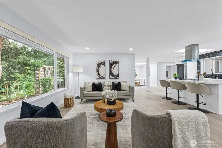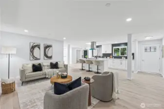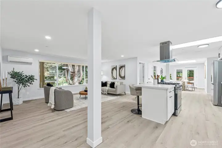 Fully updated rambler with endless potential, ideal for an Adult Family Business. This home offers 7 bedrooms and 6 baths (3 full, 3 half). Bright, open floor plan with a brand-new kitchen featuring shaker cabinets, quartz counters, and stainless appliances. Laminate flooring throughout. Bathrooms refreshed with modern ceramic tile, new plumbing, and updated faucets. Upgrades include double-pane windows, interior doors, trim, and lighting. Major systems recently replaced: high-efficiency furnace, tankless gas water heater, and Mini-Split A/C. Seamless indoor-outdoor flow with new French doors opening to an entertainment-size deck. Two oversized storage areas. Desirable neighborhood, and a corner lot. WABO & Sprinkler Final complete! Hurry!