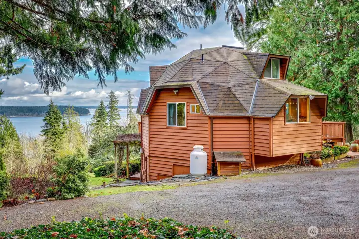 Views and two acres for under $600,000! Enjoy the peace and quiet from the deck of this sweet dome. Watch the sun rise over the shipping lanes. Views include the south point of Marrowstone Island and mountains on clear days. This sweet home has a 3 bedroom septic permit and the loft is considered the third bedroom. The pull-thru carport is 50' long and can spaciously park RVs and/or cars. The spring time gardens are gorgeous.