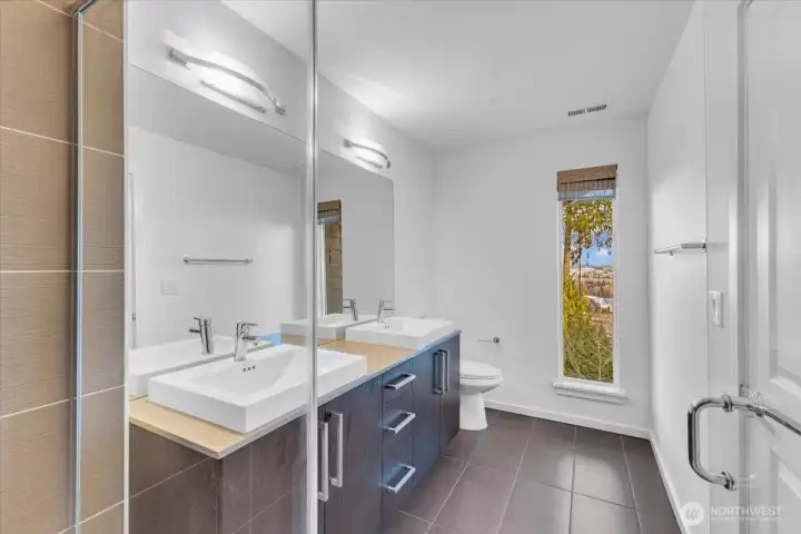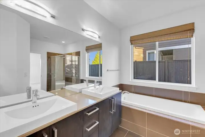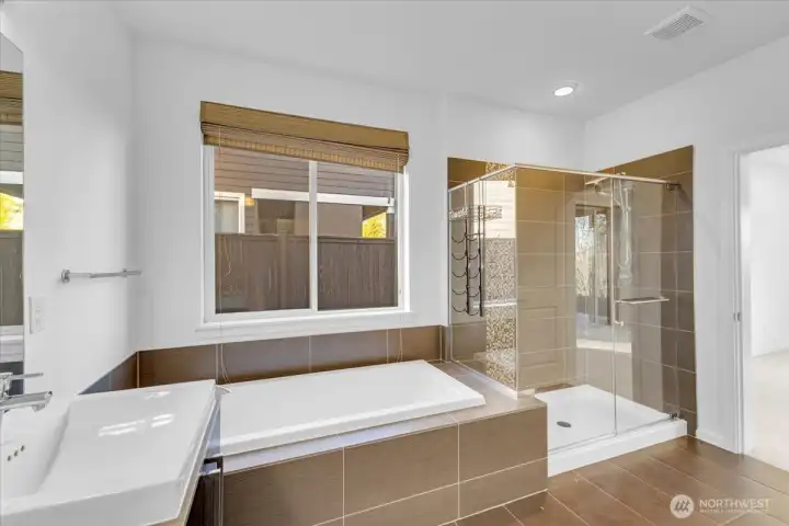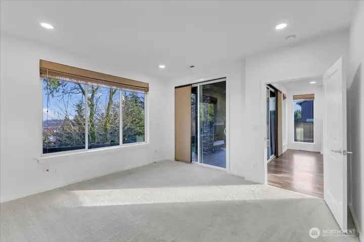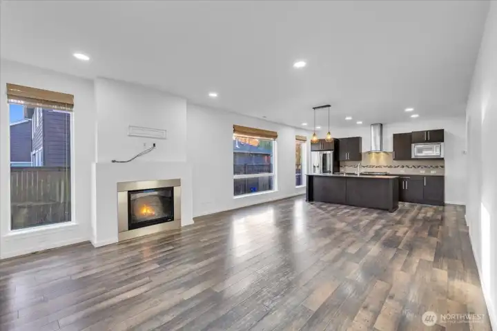 Modern MainVue luxury in sought-after Vista Pointe! Bright spaces, oversized windows, and double 10' x 8' sliders lead to a backyard covered patio with a fireplace, TV hookup, and valley views. Enjoy thoughtful upgrades, including a custom front door, butler’s pantry, super-sized island, granite counters, tile backsplash, Grohe faucets, Euro vessel sinks, designer flooring, and custom blinds. Recently painted, featuring new carpets and lighting, this resale feels like a new construction home! A large primary bedroom on both the main floor and upper floor, perfect for multi-generational living. Enjoy the best of both worlds—privacy with no front or rear neighbors and the warmth of a vibrant community. Access to 18, 167, 99, and shopping.