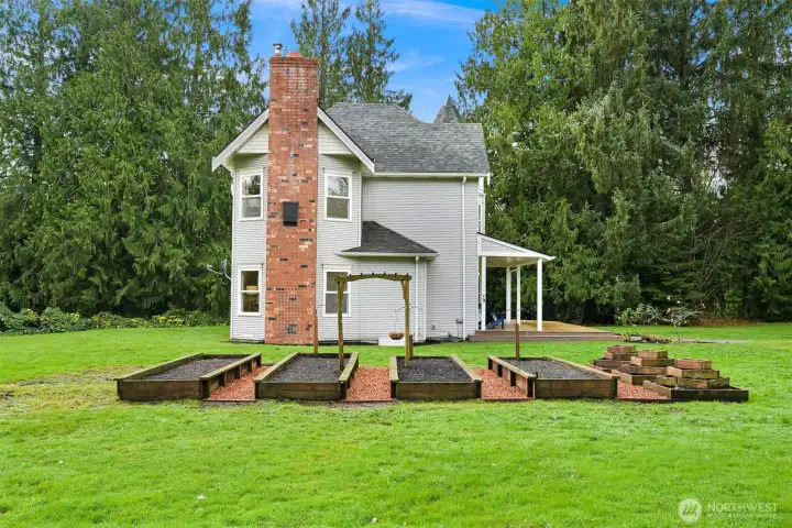 Nestled on a tranquil 6-acre property this home offers privacy and close proximity to Bellingham, Bow and Burlington. Enjoy the warmth of a fireplace in the family room and the elegance of hardwood floors throughout. Formal living room and dining room. Main floor laundry and half bath. The spacious kitchen has a dining nook with French doors leading out to wraparound deck. Upstairs find the spacious primary suite with a jetted tub. 2 bedrooms (one with a fireplace) + full guest bath. The property features a functional workshop with 220V and a loft, perfect for projects or storage, a two-car garage and additional shed for extra convenience. Outdoor enthusiasts will appreciate the raised garden beds and the soothing presence of Friday Creek.