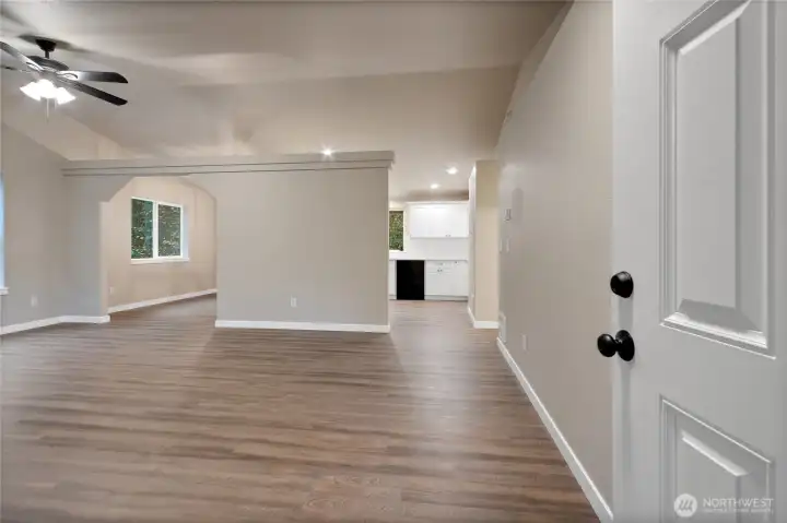 Updated and truly living like new, this 1,733 sqft home is conveniently located just inside the Clearwood gate. Offering 3-bedrooms and 2-full baths, this home features new interior & exterior paint, new carpet, LVP flooring, quartz countertops, new cabinets, doors & millwork, new wall heaters, appliances, roof & gutters. The primary suite includes a walk in closet and private bath. 2 car garage plus 427 sqft of unfinished bonus space is off the garage and rec room. The home is tucked up away from the road and surrounded by large firs giving it a private feel with a large side yard & new black gravel drive. Access three lakes, boat launches, miles of scenic trails, picnic areas, sport courts, pool and only 40 minutes to JBLM. Move in ready!