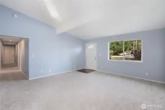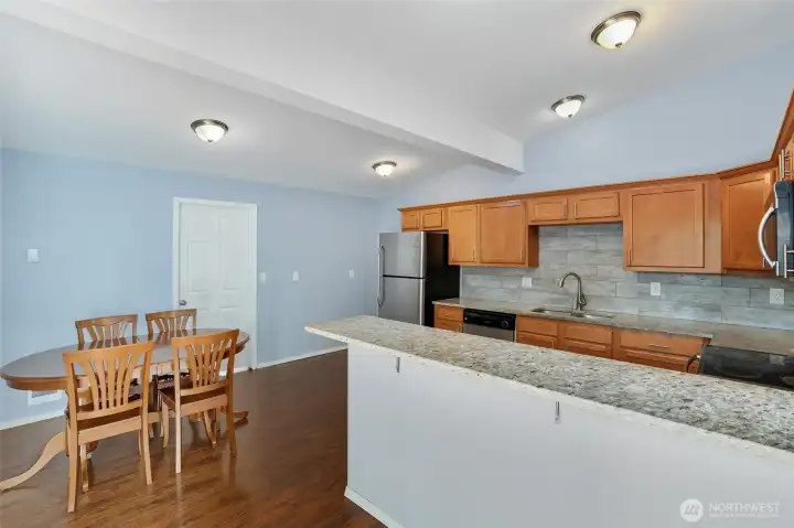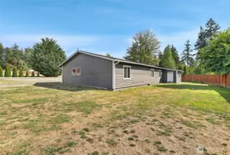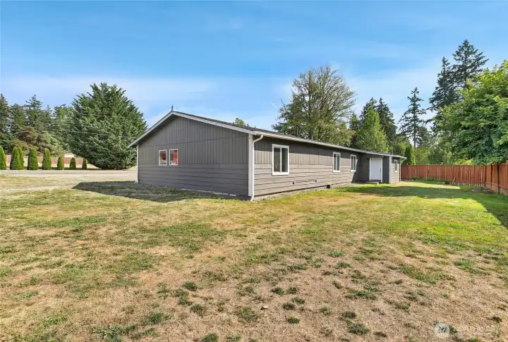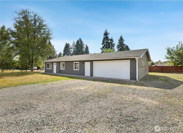Over an Acre Close-In! This refreshed Rambler on a 1+ acre corner lot combines space, comfort, and convenience. Featuring 4 bedrooms + den and 2.5 baths, it offers vaulted ceilings, a large living room, and all-new carpet. The kitchen boasts granite slab counters, tile backsplash, hardwood floors, stainless appliances, and an eating bar. The primary suite includes a spacious vanity, private water heater, and walk-in closet. Outdoors, enjoy a partially fenced yard, entertainment deck, and abundant parking for RVs, toys, and guests. Plenty of room to build an ADU. A 2-car garage completes this rare opportunity to own a roomy Rambler on over an acre just minutes from town!