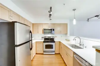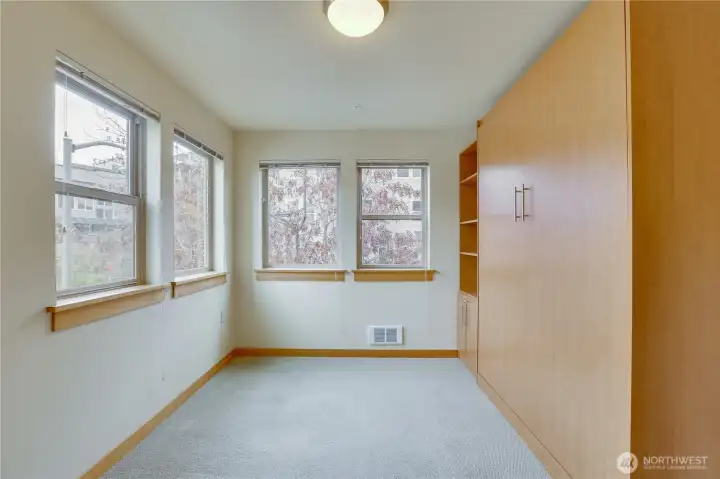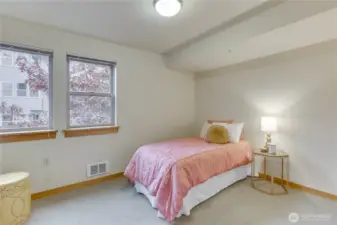 Experience urban living in this light-filled end-unit condo. The expansive great room is flooded with natural light. The large primary suite features built-ins in closet & ensuite bath while 2 other bedrooms provide excellent versatility for guests, home office or creative use. Enjoy an in-unit washer/dryer. Secure entry, a gated garage with 2 dedicated parking spots & well-maintained community gathering room and rooftop deck. Save on utilities since the dues include: central hot water, water, sewer & garbage. The upcoming Sound Transit East Link Extension, trending to open in early 2026 will make commuting even more convenient. Perfectly situated near transit options, cafés, shops + everyday essentials puts Seattle life at your fingertips.