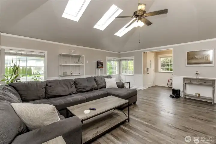 Welcome to this bright & beautifully updated home on an oversized ~1/3-acre lot. This 2-bedroom, 1.75-bath home also includes a versatile office/bonus room. Extensive updates were completed recently, including a new roof & sheathing, new siding, fresh exterior paint, a spacious back deck, & an upgraded electrical panel. The interior has been thoughtfully refreshed throughout. Vaulted ceilings & skylights fill the home with natural light. The kitchen is a standout, well laid out with generous counter space. Unwind in the luxurious jetted tub, complete with its own TV for a true spa-like experience! The property offers plenty of outdoor space, plus a large newer shed for storage. Move-in ready and full of charm, welcome home!