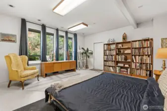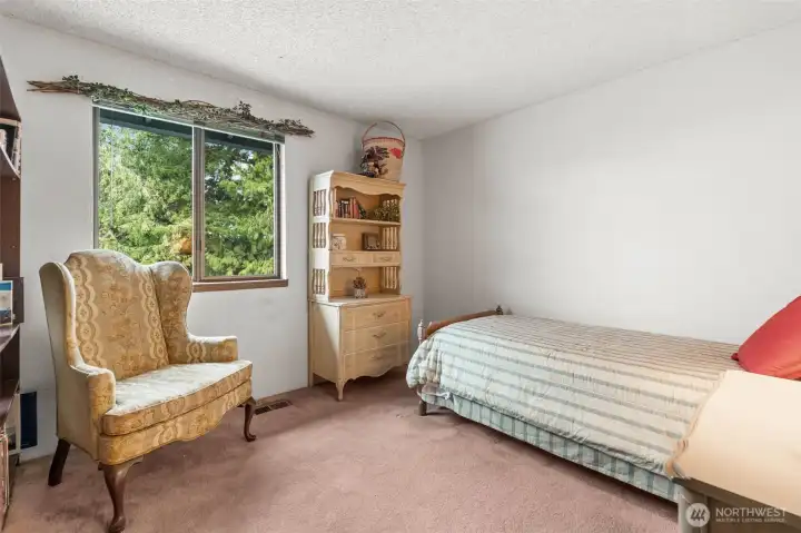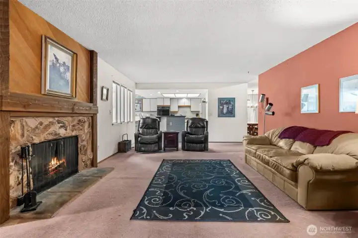 Discover the potential in this spacious NW Contemporary on a serene private lot. Light-filled main level offers a living room with fireplace and a bright sunroom off the kitchen. Upstairs features a large primary suite with walk-in closet and full bath, two additional bedrooms, full hall bath, and a loft-style den/office (possible 5th bedroom). Lower level includes a generous bedroom with separate backyard entrance, family room with second fireplace, and half bath—ideal for multi-gen living. Large backyard with deck offers great space for entertaining/gardening. Major updates include new water line, furnace, water heater, and a 3-yr old roof. Prime location near I-5, I-405, and Sea-Tac Airport. Bring your vision and make this home shine!