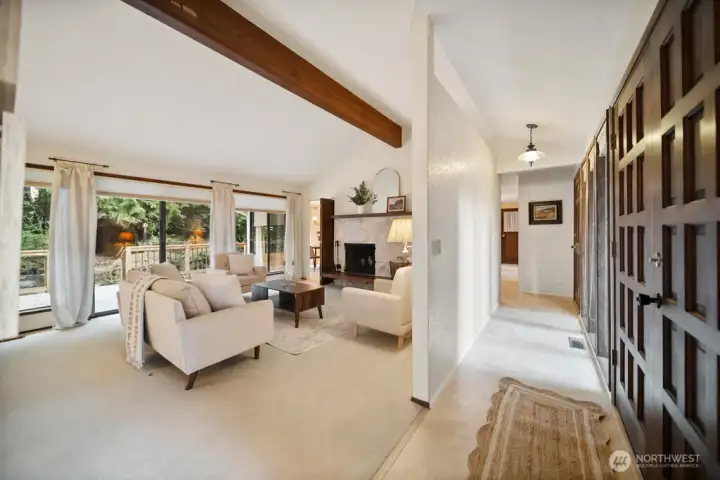 Welcome home to this lovingly maintained & thoughtfully designed single-level home offering 1,859 sq ft. Enjoy two inviting living areas—one warmed by a cozy fireplace & the other a wood-stove insert. The spacious kitchen includes a breakfast bar & flows seamlessly into both small & large dining rooms, giving you flexible options for gatherings. This home is filled with character w/large windows that frame the lush, park-like setting & natural greenery that creates a peaceful, private atmosphere. Recent upgrades include a brand-new roof & a new septic system for peace of mind. Centrally located in Central Kitsap, you’ll be within walking distance of the Kitsap Tennis & Athletic Center & just minutes from PSNS, schools & shopping.