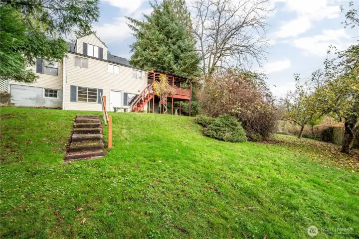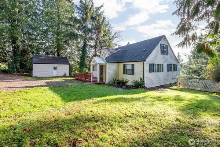 Character abounds in this cozy country home in a desirable Columbia Heights location! Charming home boasting 1,296 SF, 3 bdrms, frml living rm w/wood stove, dining rm w/wall of windows, spacious kitchen w/walk-in pantry-eating area-French doors to lrge covered deck, foyer w/oak doors-parquet floor, primary bdrm on main w/2 large closets, large bathroom w/dual sinks-tub-separate tile shower, den-office, utility rm off kitchen w/ample storage cabinets, 2 generous bdrms on the upper floor, welcoming entry deck, 1,000 SF shop & potting rm in basement, dbl pane windows, ductless heat pump, newer roof-gutters & vinyl siding. The grounds feature a 320 SF detached garage, private fenced back yard-fruit trees-garden space & awesome territorial view!
