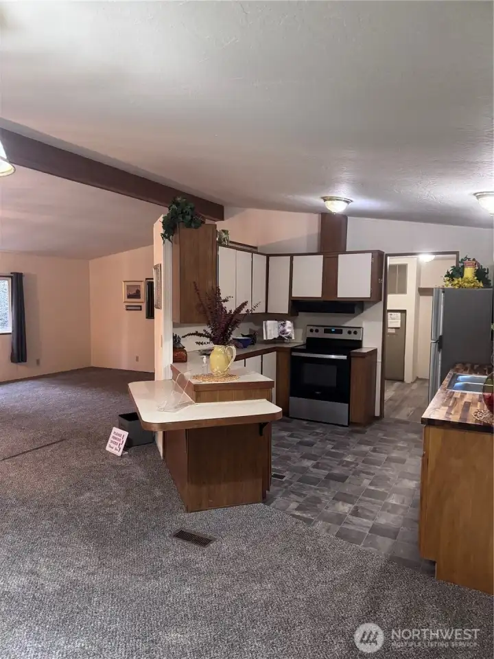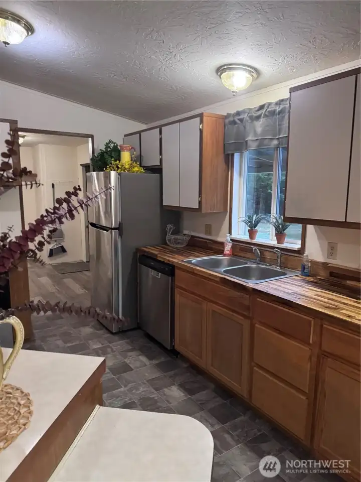Well maintained 1990 double-wide manufactured home on 2.64 acres with 3 bedrooms and 2 full baths. The home features an open layout with a large living rooma wood burning stove and dining area. The kitchen offers lots of counter and storage space. Off the kitchen is an oversized utility room suitable for laundry and pantry use. The primary bedroom includes a full bath, private water closet, and walk-in closet. Two additional bedrooms and a second full bath provide added living options. Exterior acreage offers space for a variety of uses, including garden, campfire site, and even a babbling creek and a 1986 detached general-purpose building with a 2-car garage and an upper area suitable with some fixen for lots of storage or future shop use.